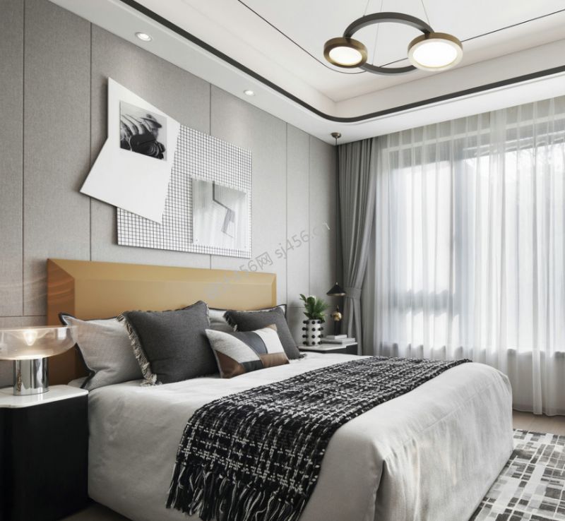 现代风三居室卧室床头背景墙挂画设计效果图欣赏