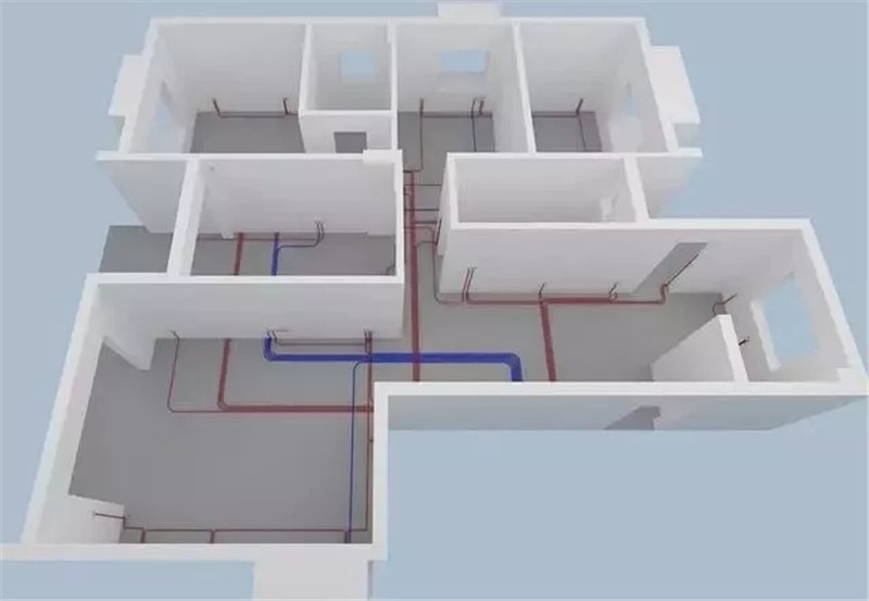 水路:全房使用德国进口欧曼隆水管,PPR布管横平竖直,热熔连接,中端100mm处设管卡,安装牢固,左热右冷,无损伤,安装完成后打压恒压。