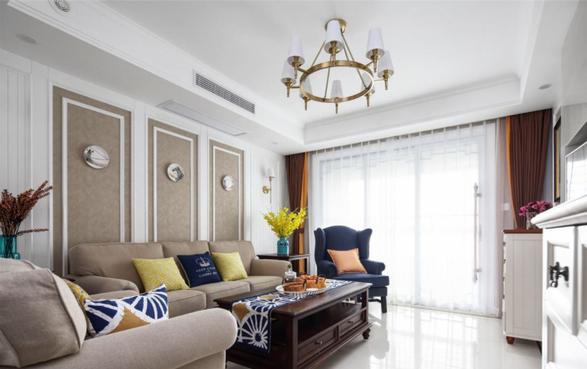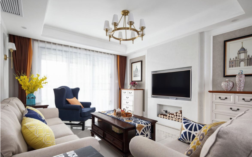 沿用美式复古家具,调以织物颜色的搭配,自然而然营造出温暖舒适感。