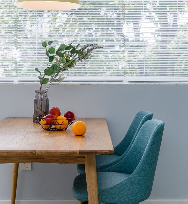 ▲设计师采用清新的白、蓝及木色为主色调,创造一个简约、健康、闲适的生活空间。