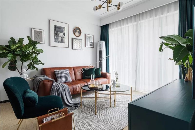 北欧风103平米三居室客厅窗帘装修设计图