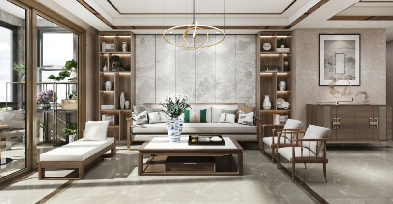 新中式风格155平米四居室客厅展示柜设计装修效果图
