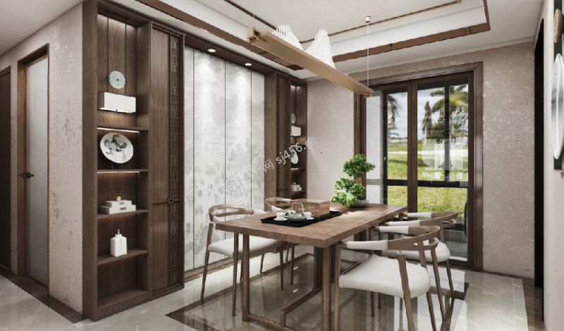 新中式风格155平米餐厅展示柜设计装修效果图