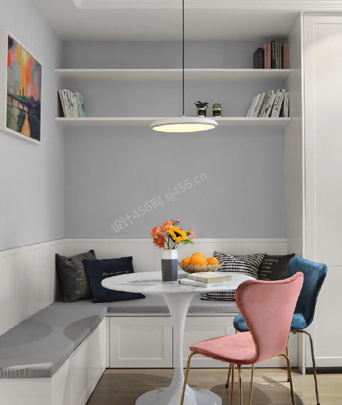 北欧风格105平米餐厅背景墙书架装修设计图