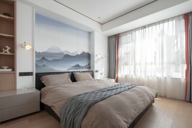 简约风格三居室卧室床头吊灯装修设计图