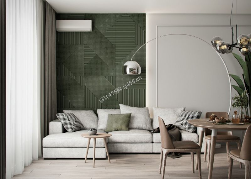 极简风格134平米三居室客厅落地灯装修效果图
