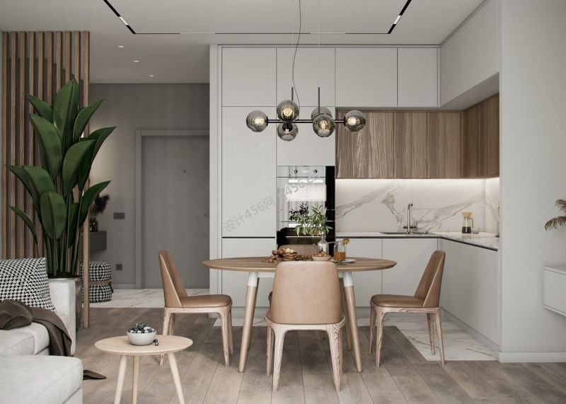 极简风格134平米餐厅背景墙装修效果图