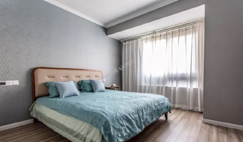 简约风格三居室卧室床头背景墙壁纸设计效果图