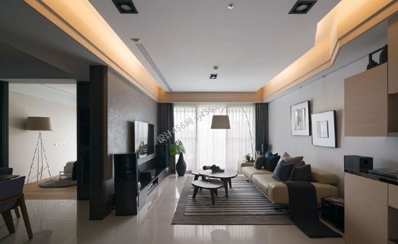 现代风格110平米二居室客厅吊顶设计装修效果图