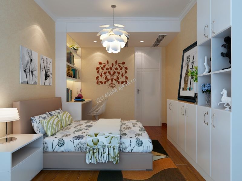 120平米欧式混搭三居室次卧背景墙装修效果图