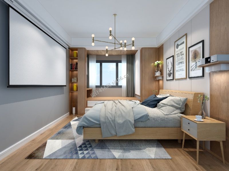 101㎡北欧极简风三居室卧室背景墙装修效果图