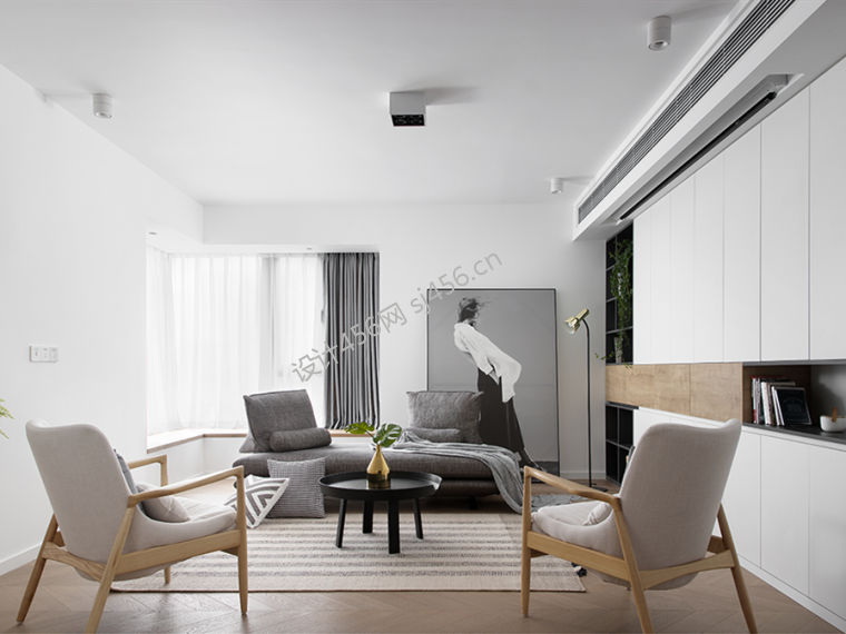极简风格142平米三居室客厅沙发背景墙装修效果图