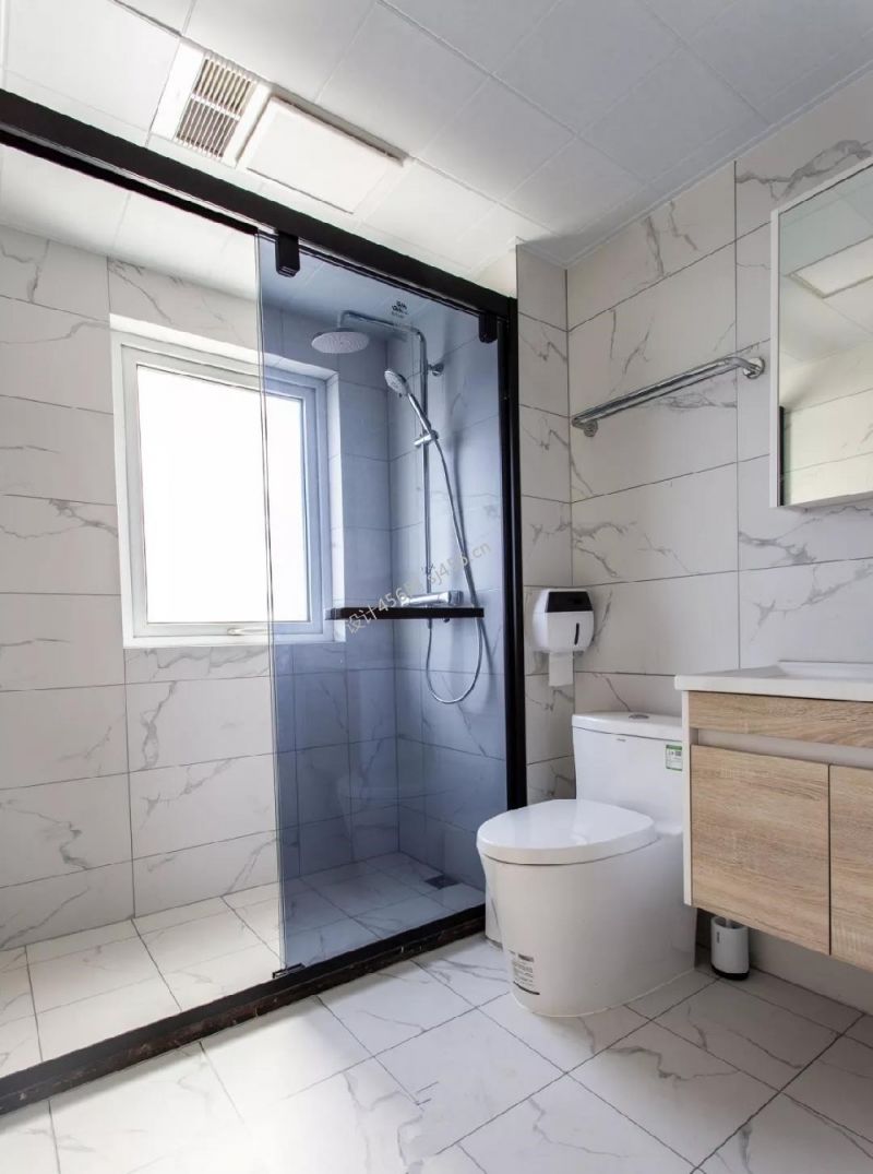 简约风格129平米卫生间玻璃推拉门设计效果图