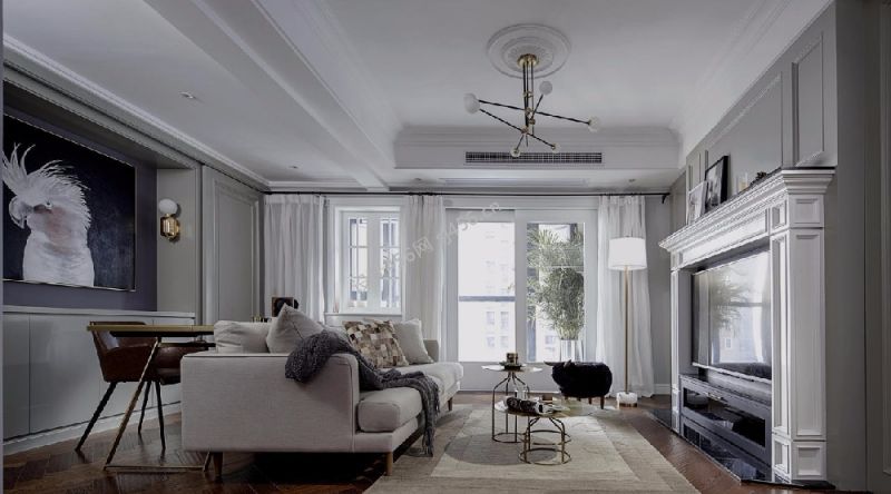美式风89平米客厅电视背景墙装修设计图欣赏