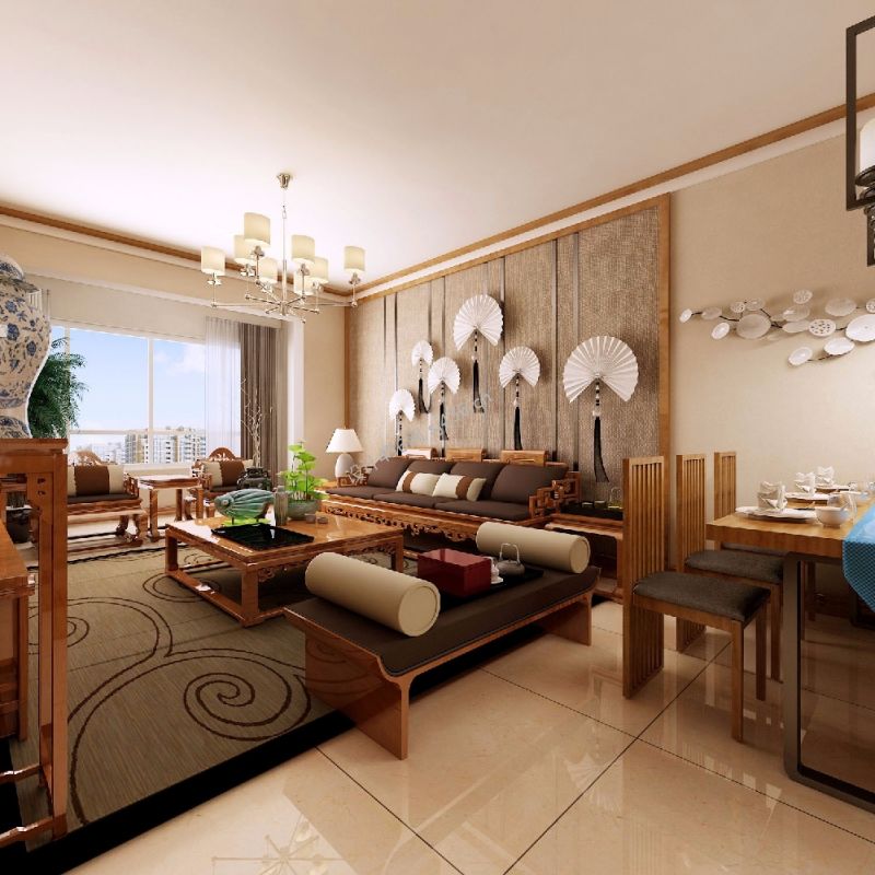 中式风别墅120平米客厅窗户窗帘设计效果图