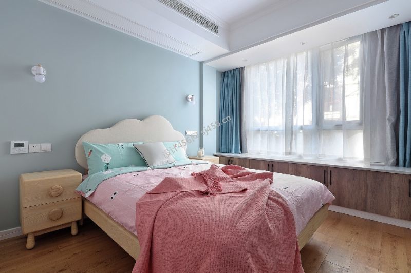 极简风家装二居室卧室飘窗窗帘装修设计图