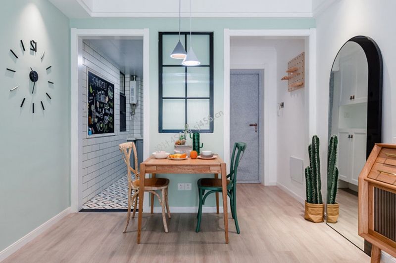 美式风格94平米餐厅背景墙镜子设计图