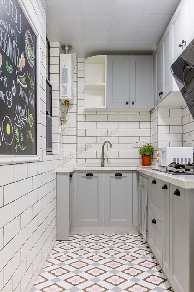美式风格94平米厨房窗户装饰设计图