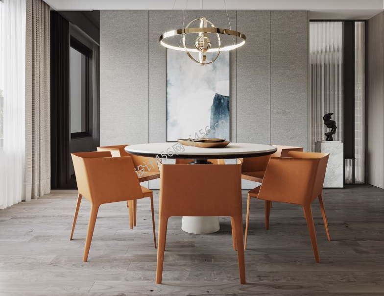 极简风格122平米餐厅吊灯造型装修设计效果图