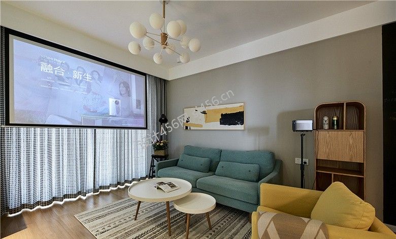 北欧风格98平米二居室客厅吊灯造型装修设计图