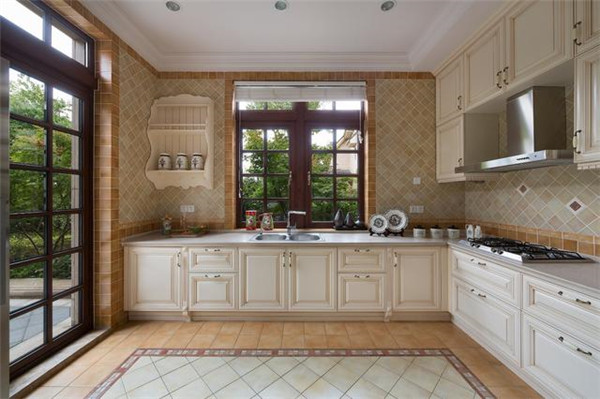 特别宽敞的一个厨房~而且厨房的颜色选用了温暖色~