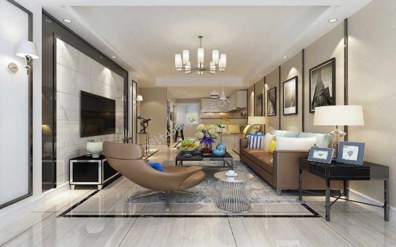 禹州天悦湾四居152平混搭风格客厅吊灯设计效果