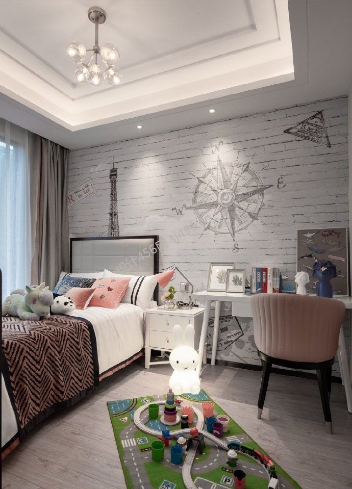财富天下103平米三居东南亚卧室书桌装修设计效果图
