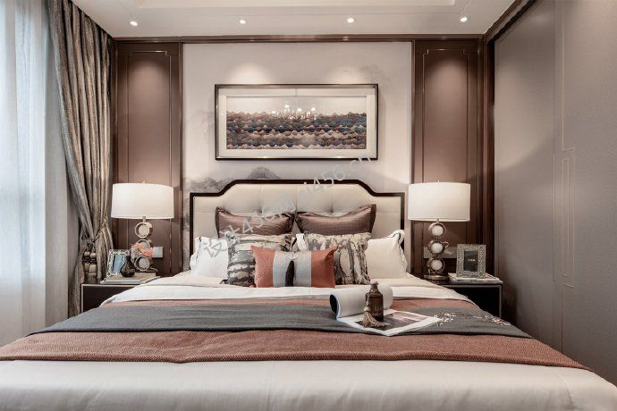 财富天下103平米三居东南亚卧室背景墙装修设计效果图