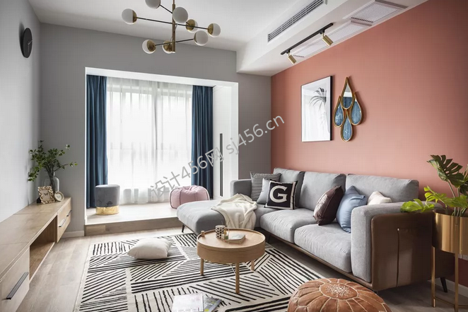 北欧风格76平米三居室客厅沙发背景墙设计效果图