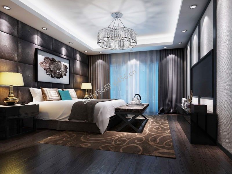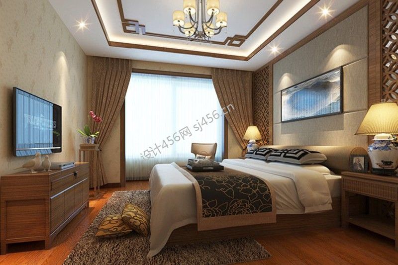 168平米四居室卧室床尾凳装修设计图