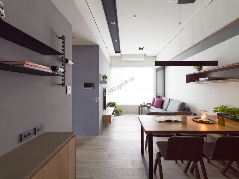 现代风格92平米二居室客厅餐厅一体化装修效果图