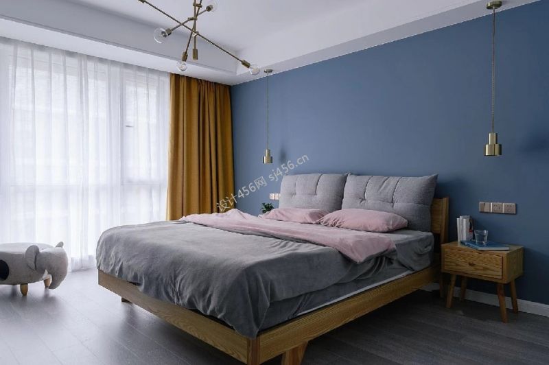 128平米三居室卧室床头吊灯设计效果图