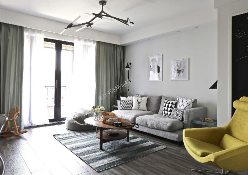 两室两厅北欧风86平米二居室客厅阳台玻璃门设计图