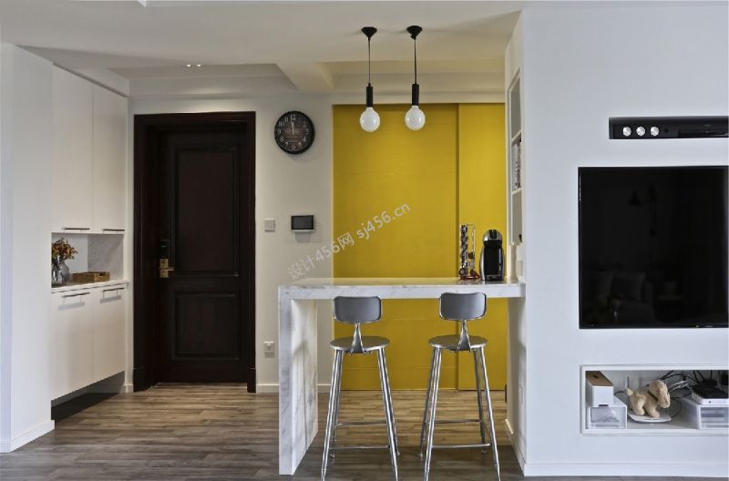 北欧风86平米吧台桌装修设计效果图欣赏