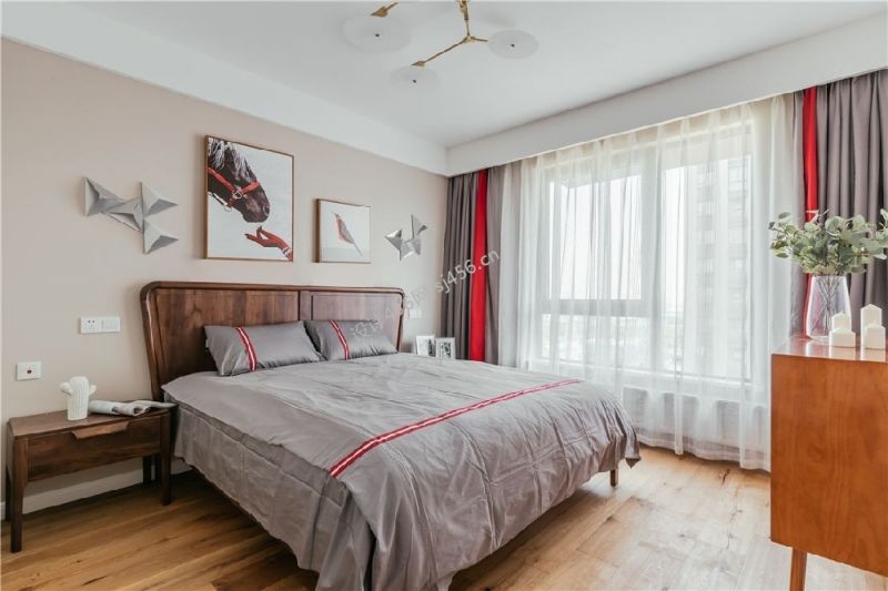 112平米三居室卧室窗帘颜色搭配装修设计图