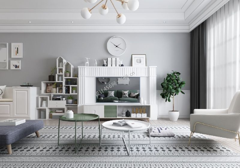 北欧风格80平米客厅电视柜设计装修效果图