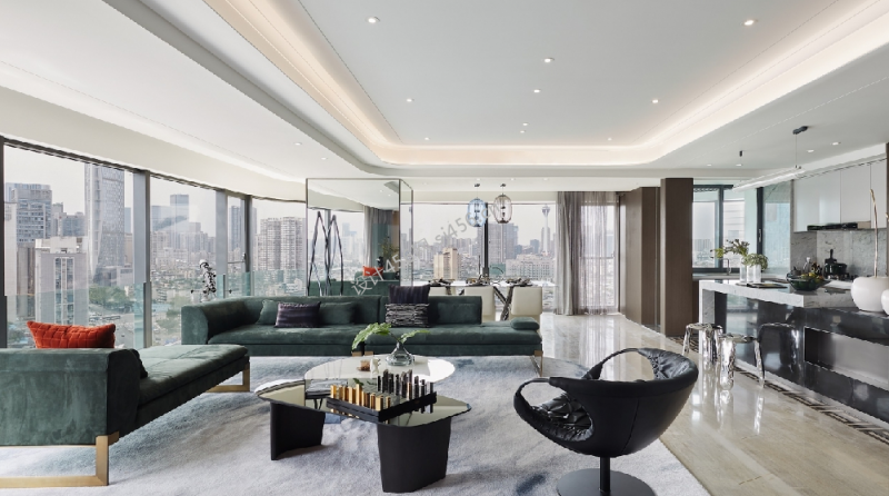 轻奢风格183平米三居室客厅吊顶造型设计效果图