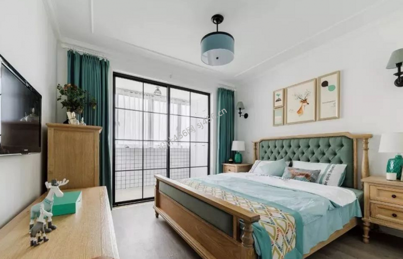 美式风格92平米二居室客厅吊灯灯具装修效果图
