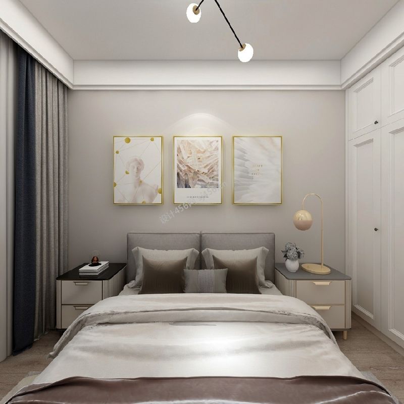 110㎡现代简约三室两厅卧室背景墙装修效果图
