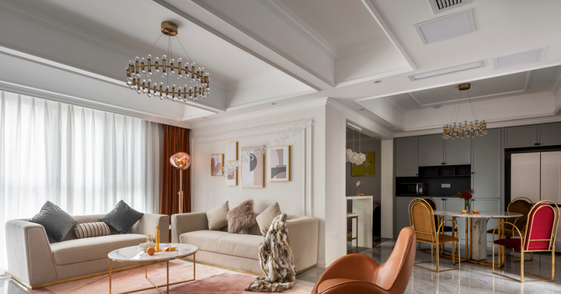 混搭风格110平三居室客厅沙发背景墙设计效果图