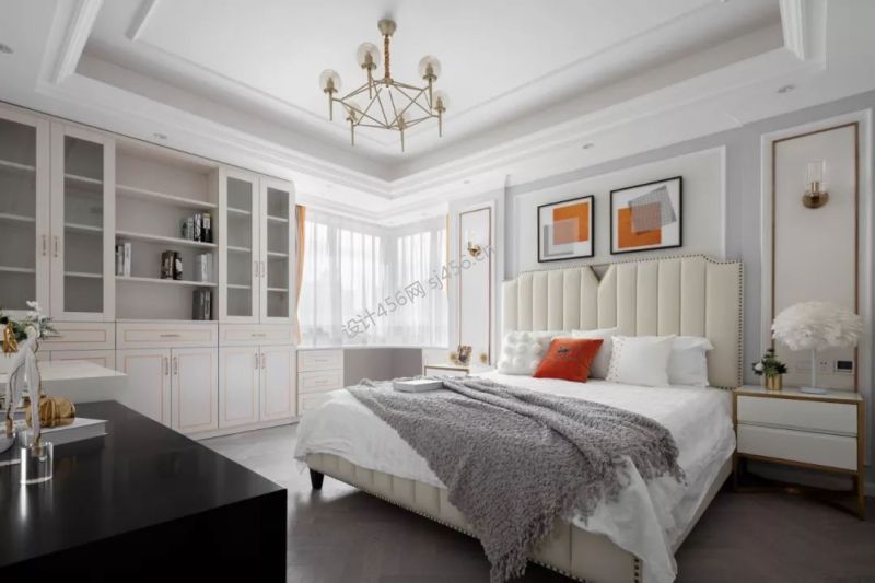 轻奢风格三居室卧室吊灯装饰装修效果图