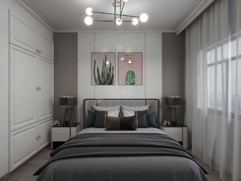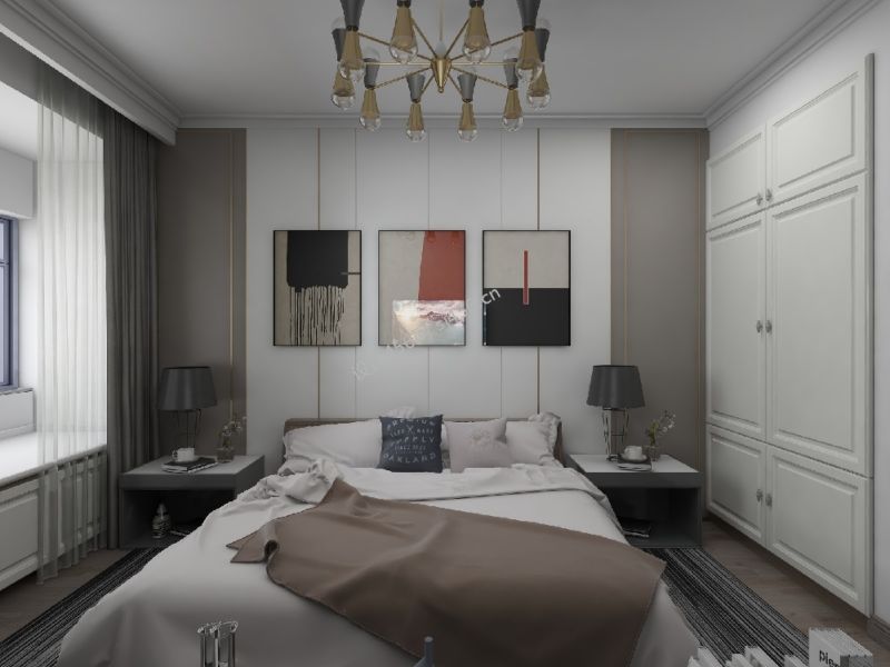 111㎡现代轻奢风三室两厅次卧背景墙装修效果图