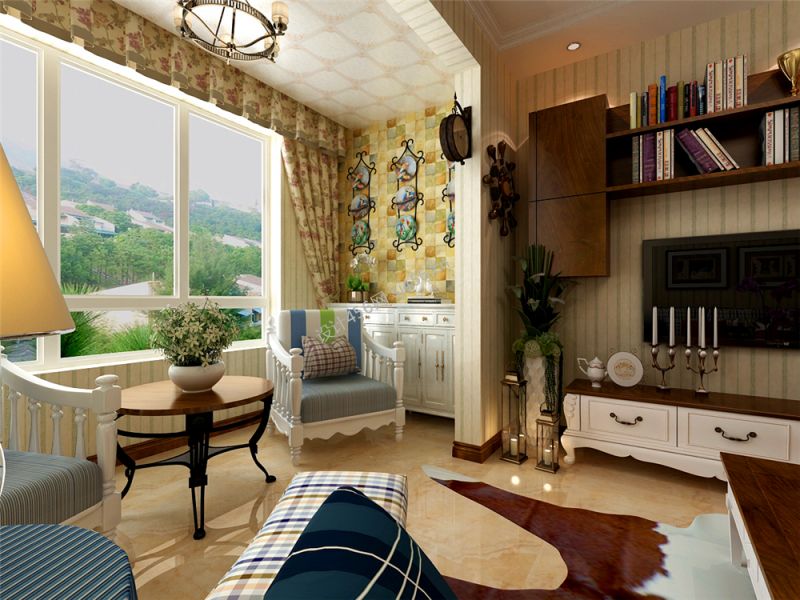 海亮天城90平米三居室美式风格阳台装修设计效果图赏析