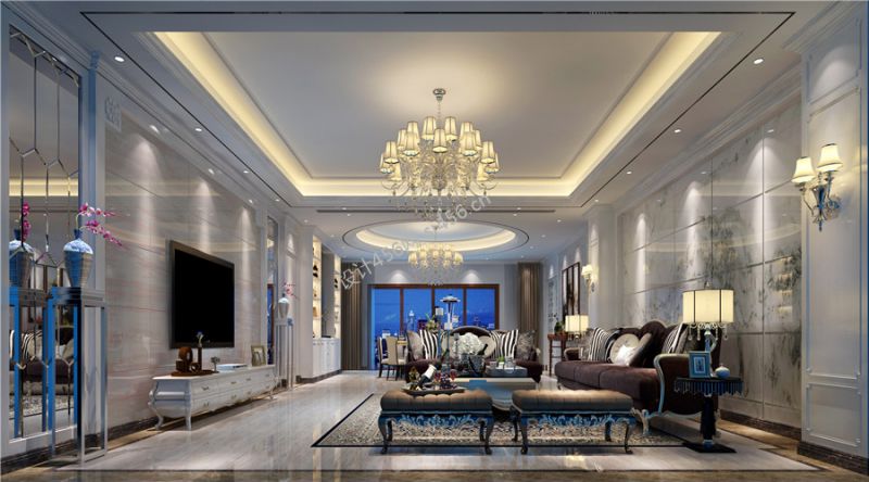 保利嘉福90平米二居现代客厅吊顶装修设计效果图