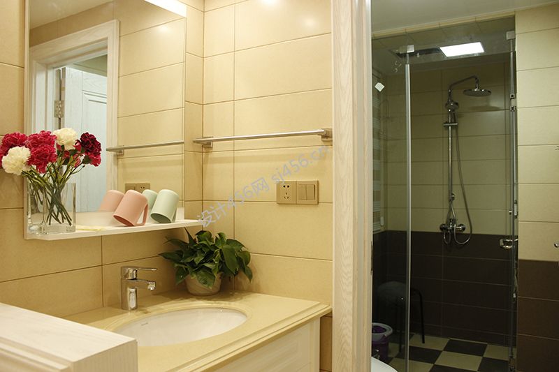85平米二居室温馨风格洗手台装修设计效果图