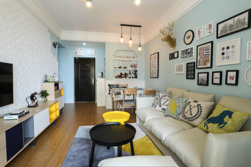 设计理念: 360°无死角的客厅,谁见谁爱。淡蓝色的墙,仿佛北欧的海风吹进了家里。 360°无死角的客厅,谁见谁爱。淡蓝色的墙,仿佛北欧的海风吹进了家里。