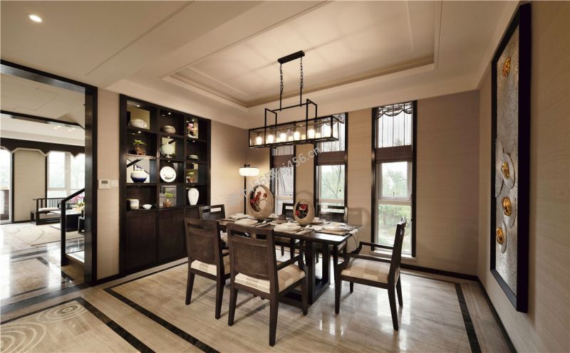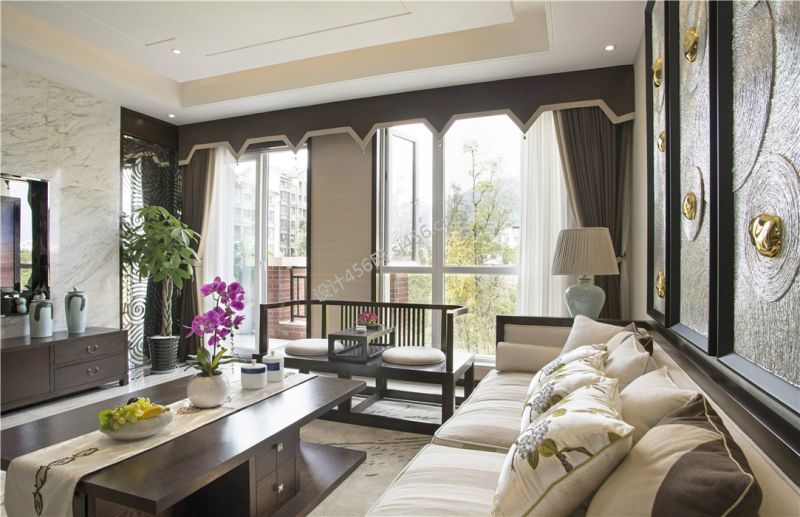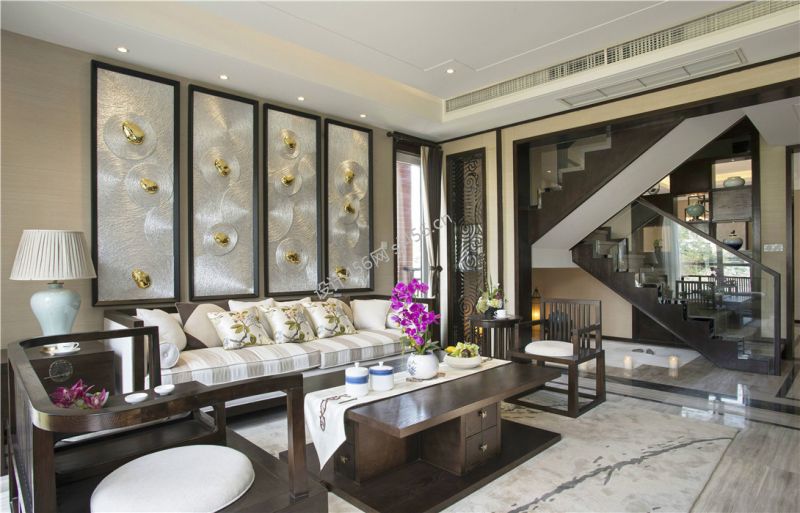 详情350平米新中式风格别墅沙发背景墙装修设计效果图