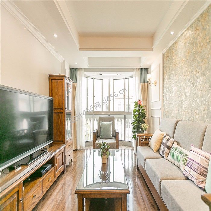 设计理念: 为了使整个空间不显得那么沉闷,电视与沙发背景没有做过多的造型,通过素雅的壁纸和白色线条的结合营造一种温馨浪漫的感觉。 为了使整个空间不显得那么沉闷,电视与沙发背景没有做过多的造型,通过素雅的壁纸和白色线条的结合营造一种温馨浪漫的感觉。