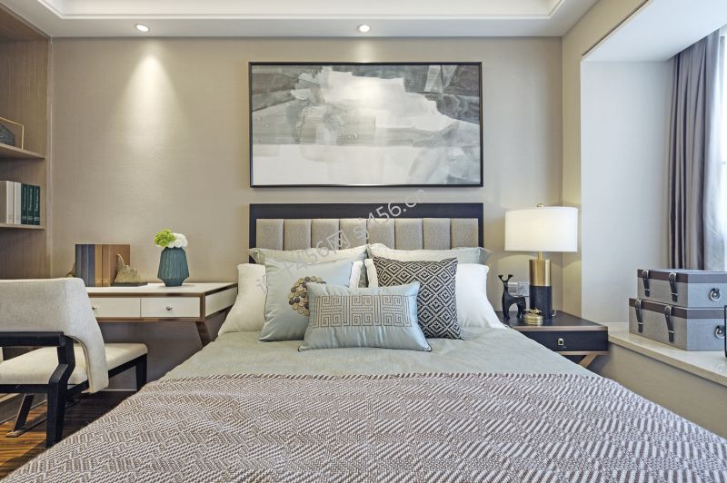 2020中州天御160平米四居室中式风格卧室背景墙装修设计效果图