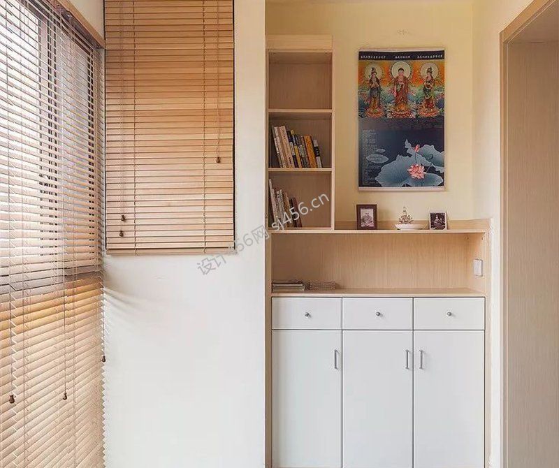 2020中信城90平米三居日式佛系雅居书柜背景墙装修设计效果图